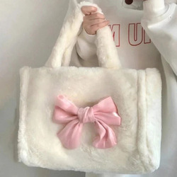 Borsa di pelliccia di coniglio calda ragazza con borsa Tote di fiocco rosa di velluto