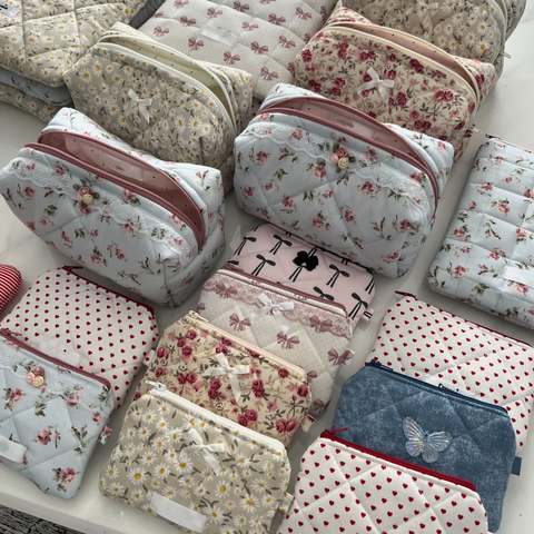 Custodia di bellezza in cotone custodia portatile da viaggio borsa per il trucco trapuntata floreale