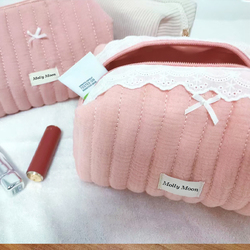 024韓国レディース女の子用化粧バッグコーデュロイストライプ旅行化粧品バッグピンクスクエアポーチサイドタグ付き
