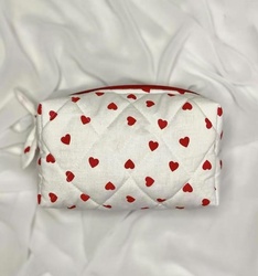 新製品爆発ホワイトブルーハートパターン化粧バッグカスタムロゴ卸売女性の化粧バッグ