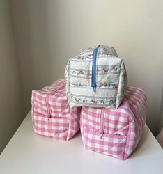 手作りキルト化粧バッグ,新到着大容量ソフトキルティング旅行化粧品ジッパー付き