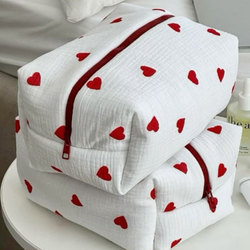 Мягкие удобные хлопковые сумки с узором в виде сердца, красные популярные сумки для туалетных принадлежностей с индивидуальным логотипом, оптовая продажа, милые косметические сумки
