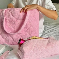 Женская Косметическая махровая сумка на молнии