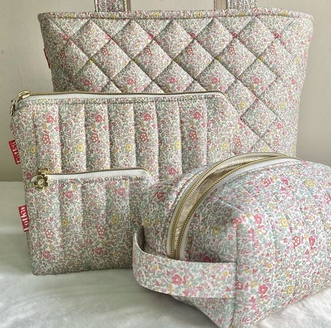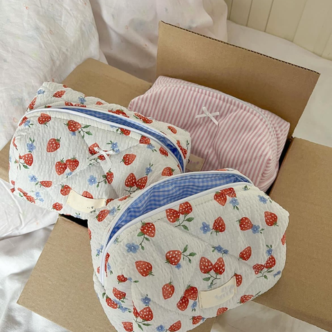 Özel Logo çevre dostu pamuk kapitone makyaj çantası seyahat tuvalet kozmetik çantası çiçek kozmetik çantası